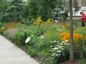 A prairie garden is the perfect way to create visual interest and update your landscaping. We can design the perfect prairie garden for your site and needs. Their tolerance for bright sun and wet to dry conditions, as well as their extensive root systems make prairie plants the perfect choice for managing stormwater runoff. Whether you want a small planting to brighten a small parking lot or a landscape design for a corporate campus, we work with busineses large and small.
